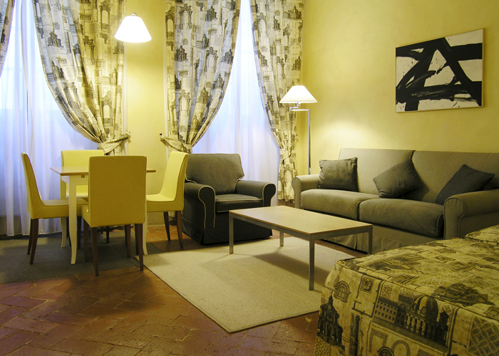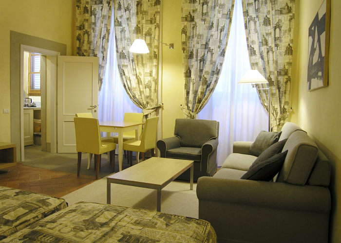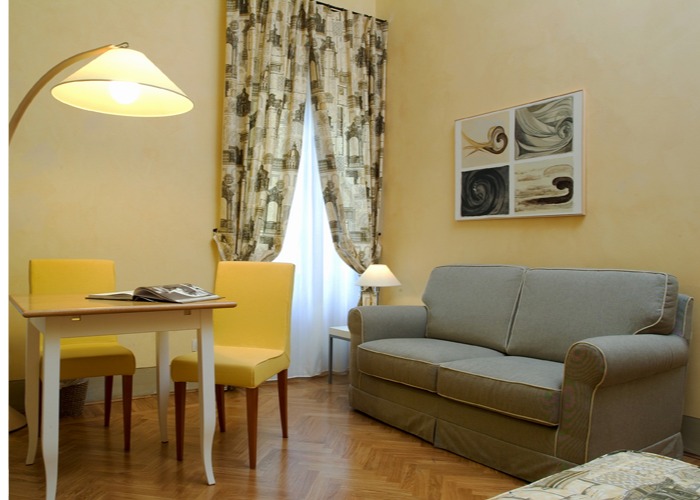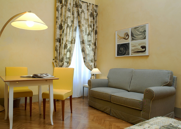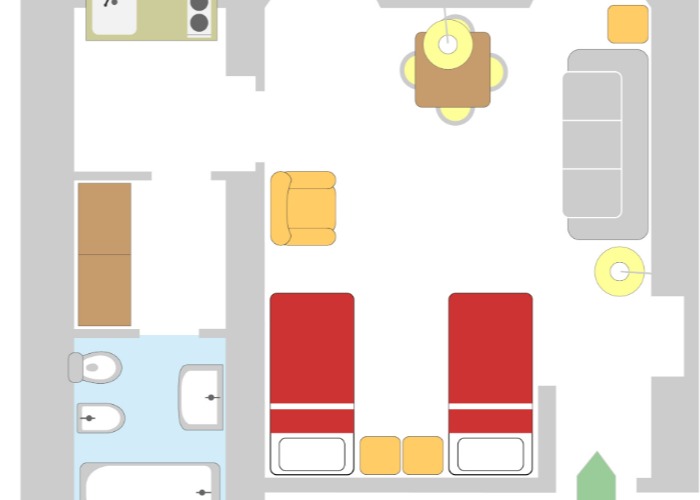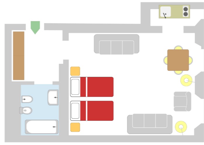 Studio Premium is design with a big main space, a different room with the kitchen and a bathroom with bathtube.