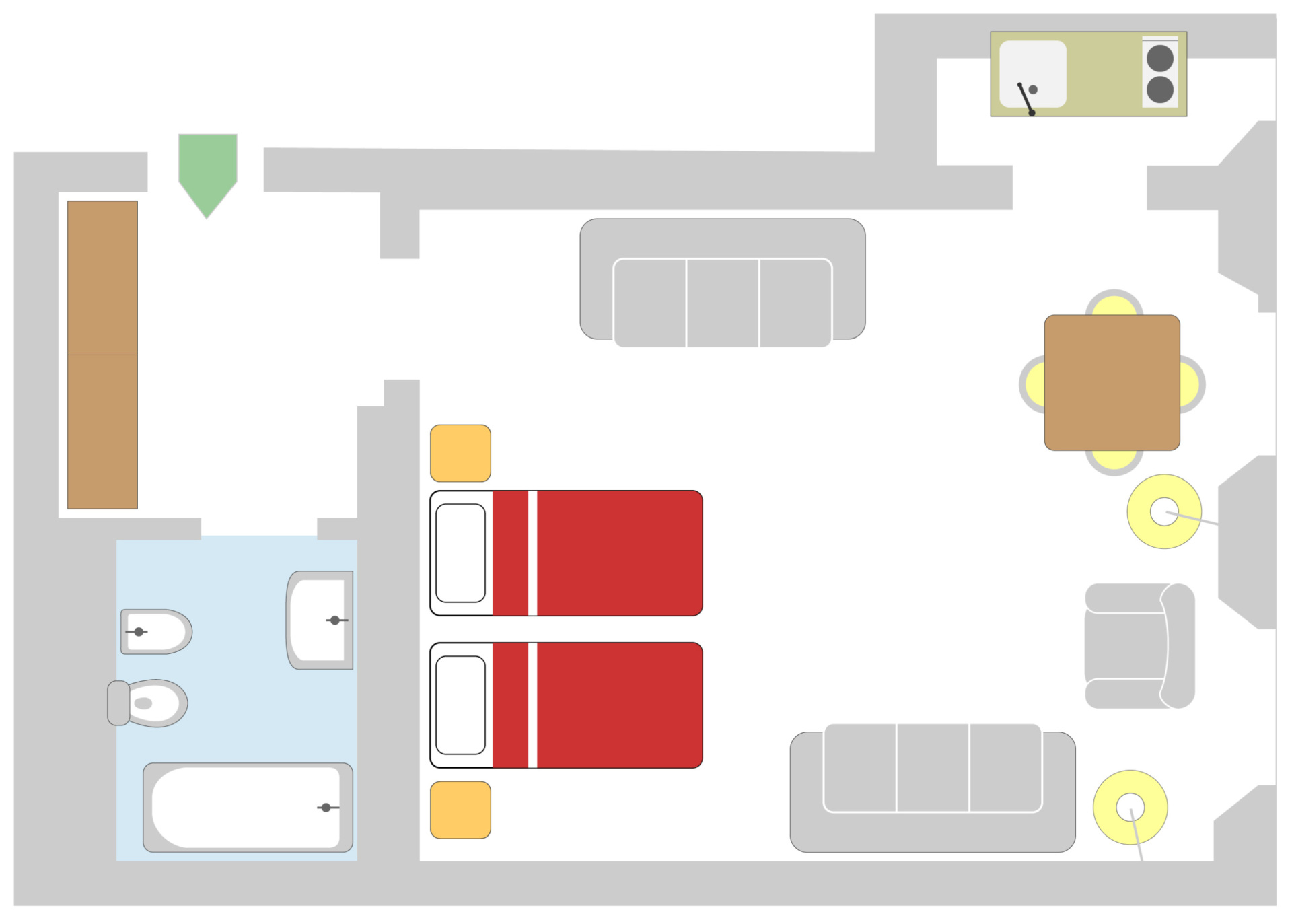 Perfect for people that need more space and a separated kitchen for breakfast or other meals.
